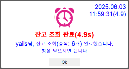 로그인이 정상으로 수행되면, 아래 그림처럼 잔고가 조회되며, 다음 화면의 STOCK-GATE회원 가입 화면이 표출됩니다.