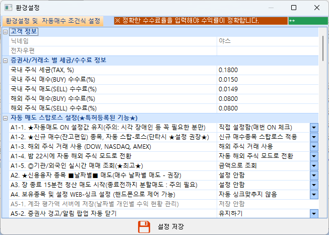 5.1. 국내 주식, 해외주식 수수료율 및 세금 비율 설정